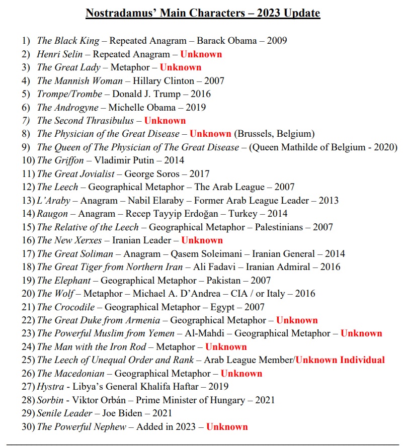 I have identified the main characters in Nostradamus’ World War III series, Henri Selin comes in at number one; The Black King, Barack Obama, comes in at number two, and Donald J. Trump comes in at number three. Vladimir Putin comes in at number four, but not through an anagram, but through Nostradamus’ allusions and metaphors.