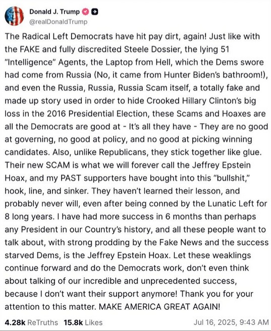 In 2025, Donald J. Trump took power again. Unfortunately, this is what he said to his MAGA, Make America Great Again, support base.